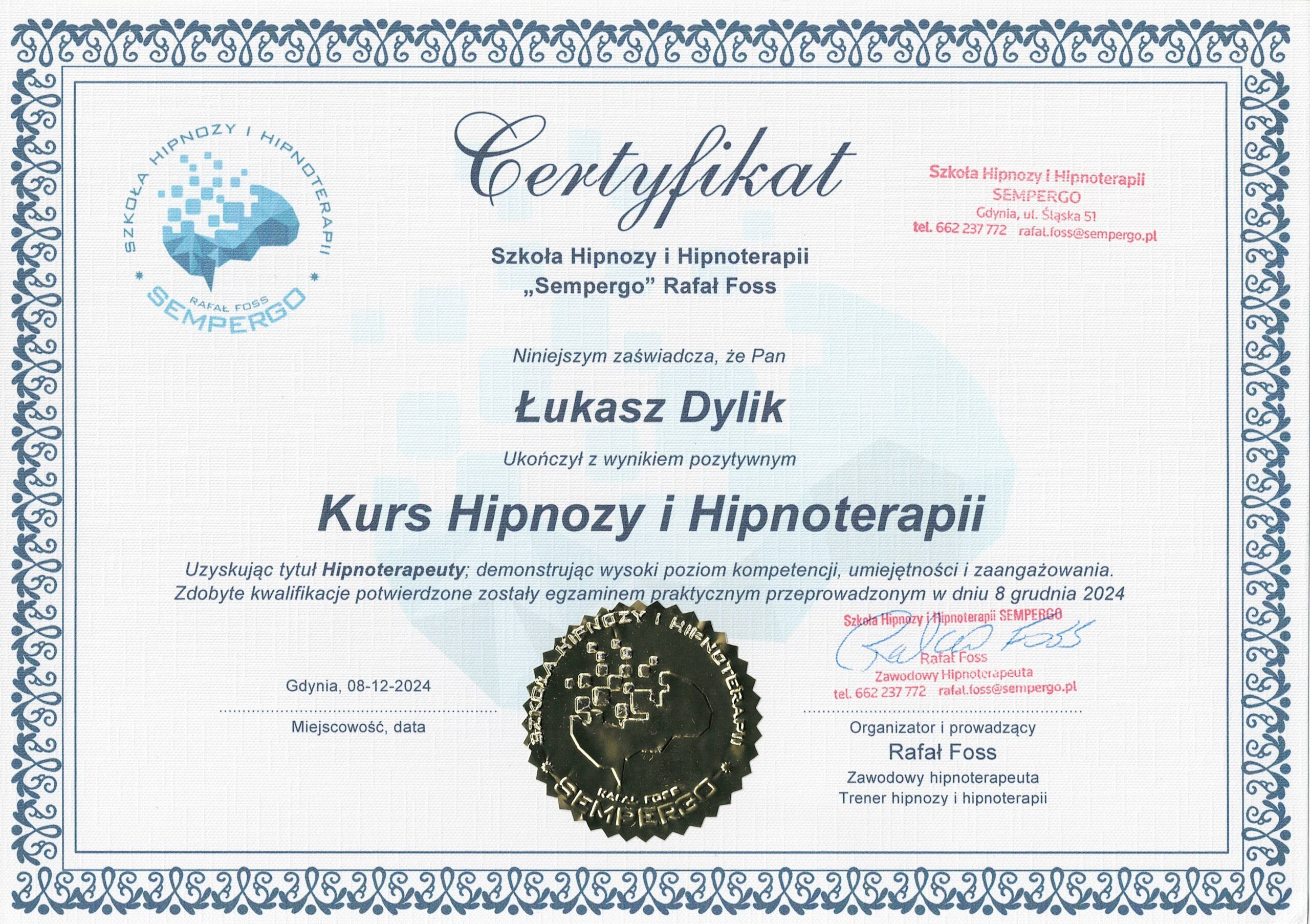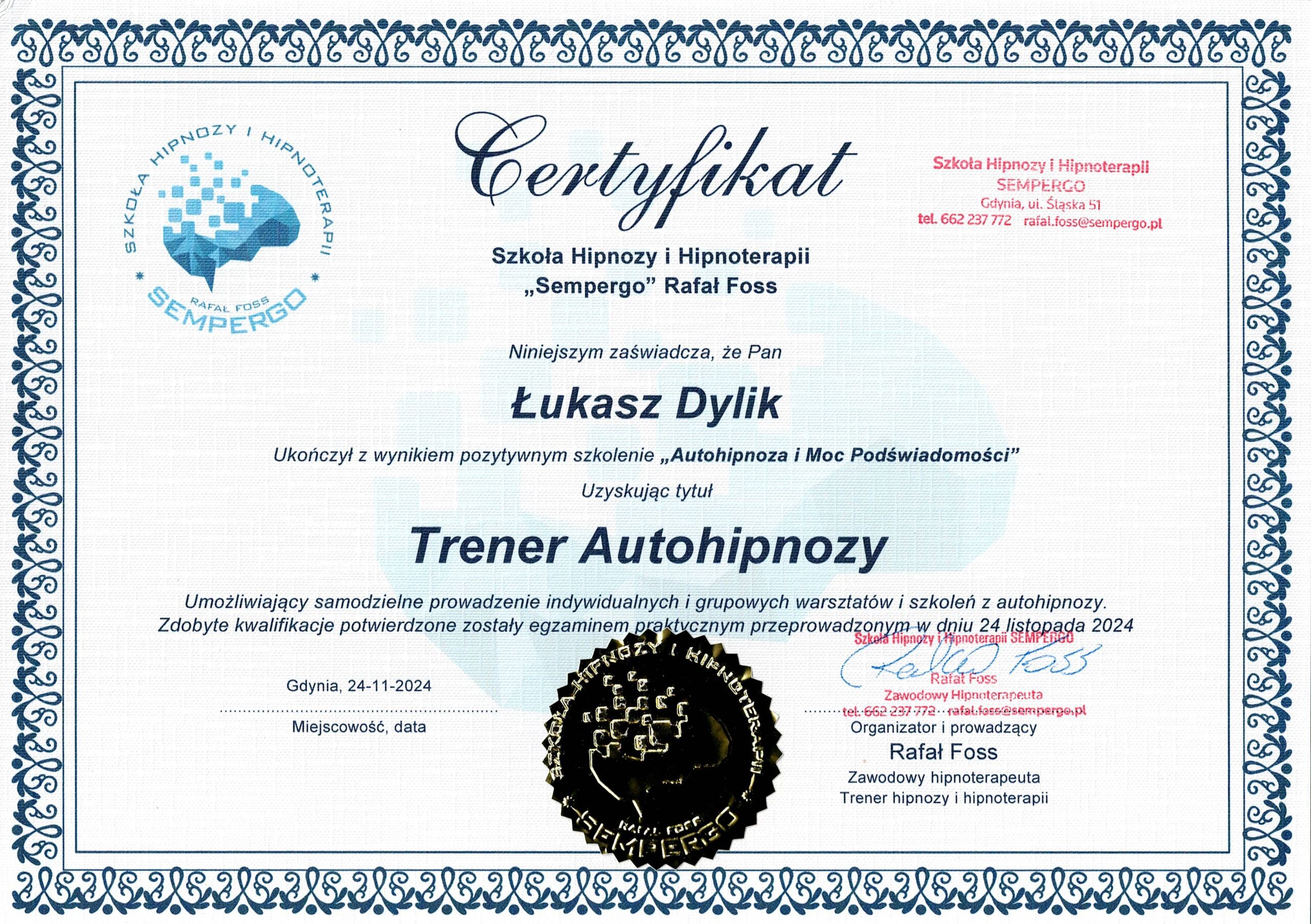Nazywam się Łukasz Dylik i jestem certyfikowanym hipnoterapeutą. Moją misją jest odkrywanie pełnego potencjału w ludziach. Pomogę Ci uwolnić się od wewnętrznych obciążeń, które hamują Twój rozwój osobisty i zawodowy.